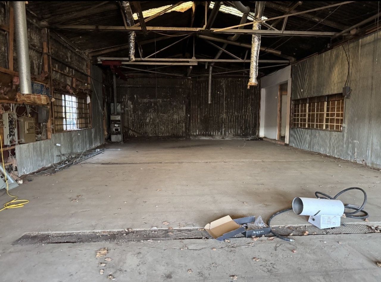 Over 3000 sq ft of heated storage space with concrete floors, 8x8 drive in door. 12ft ceilings. New bath and GFA furnace to be installed. Great for contractor storage, toy storage. No office. Two open spaces. Well and septic. No frills functional space.