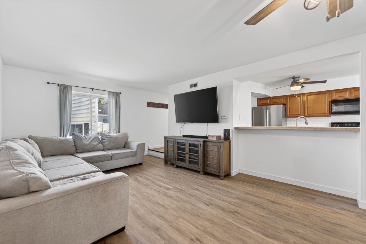 Hard to find duplex with no HOA and a large private yard. This 3 bedroom, 1.5 bath end unit offers great space, added privacy, and numerous recent updates throughout. Features include new flooring on the main level, stairs, upstairs hallway, and bathroom, along with new ceiling fans throughout. The kitchen has been updated with a new sink, faucet, and refrigerator, along with existing updated cabinetry and appliances including stove, dishwasher, disposal, and washer. Both bathrooms feature new vanities and light fixtures, and the home also includes a new HVAC system with central air. Additional improvements include Gilkey windows, an Andersen sliding door, and gutter guards. The backyard is a standout with a deck and pergola, retractable awning, hot tub, two sheds, fenced areas, and raised garden beds. Attached 2 car garage with pull down attic storage plus plenty of guest parking. A rare combination of space, updates, privacy, and no HOA in a convenient location.